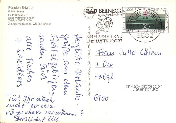 alte Postkarte Warmensteinach Pension Brigitte postalisch gelaufen Erhaltung siehe scans