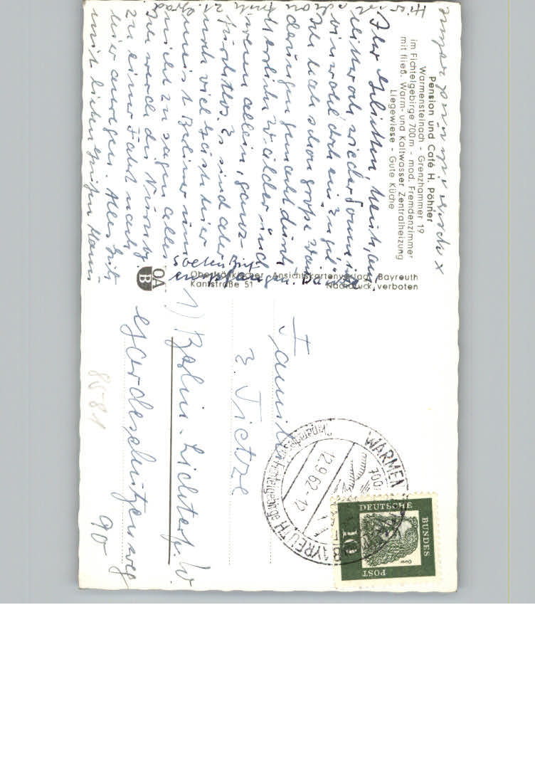 31162721 Warmensteinach Pension – Cafe Poehner postalisch nicht gelaufen KatCode: 11110009472198