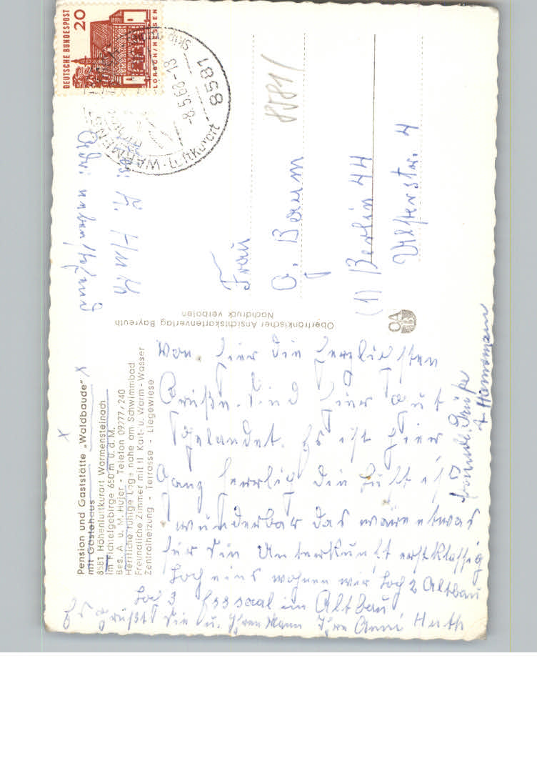 31162801 Warmensteinach Pension – Gaststaette Waldbaude postalisch nicht gelaufen KatCode: 11110009472198