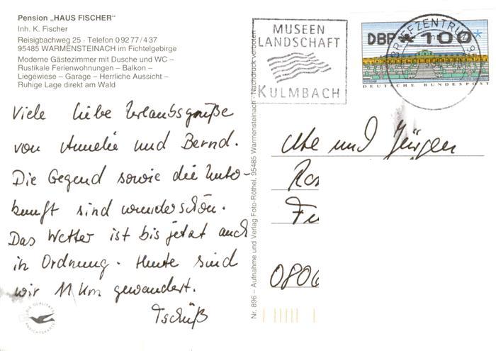 73907721 alte Postkarte Warmensteinach Pension Haus Fischer postalisch gelaufen Erhaltung siehe scans [WerneD78] KatCode: 11110009472198