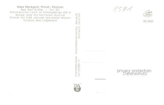 73647069 Warmensteinach Pension Haus Markgraf Panorama Landschaft postalisch nicht gelaufen Erhaltung siehe scans [FriedD77] KatCode: 11110009472198