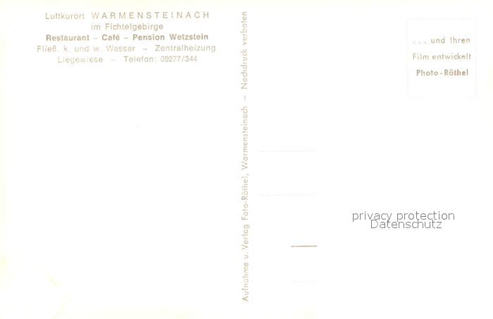 73748434 Warmensteinach Restaurant Cafe Pension Wetzstein postalisch nicht gelaufen Erhaltung siehe scans [WerneD78] KatCode: 11110009472198