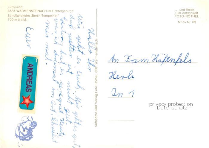 73843644 Warmensteinach Schullandheim Berlin Tempelhof postalisch nicht gelaufen Erhaltung siehe scans [WerneD78] KatCode: 11110009472198
