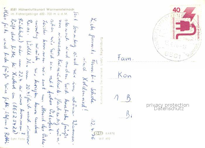 72867376 alte Postkarte Warmensteinach Schwimmbad postalisch gelaufen Erhaltung siehe scans [NatalD47] KatCode: 11110009472198