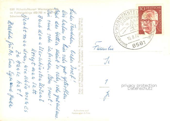 73751910 alte Postkarte Warmensteinach Schwimmbad postalisch gelaufen Erhaltung siehe scans [WerneD78] KatCode: 11110009472198