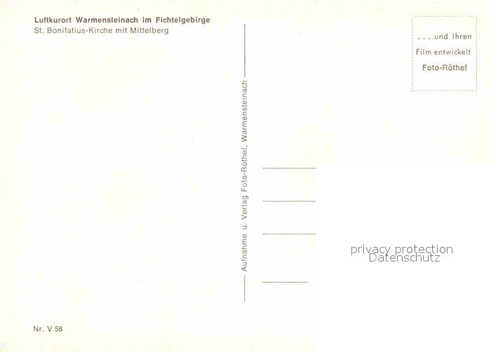 72692780 Warmensteinach St Bonifatius Kirche mit Mittelberg postalisch nicht gelaufen Erhaltung siehe scans [FriedD77] KatCode: 11110009472198