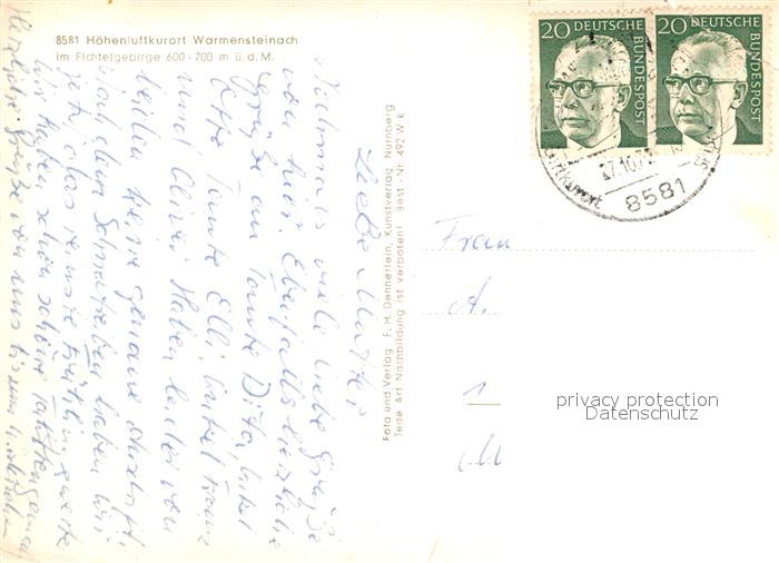 72952671 alte Postkarte Warmensteinach Teilansichten Hoehenluftkurort im Fichtelgebirge Schwimmbad postalisch gelaufen Erhaltung siehe scans [FriedD77] KatCode: 11110009472198