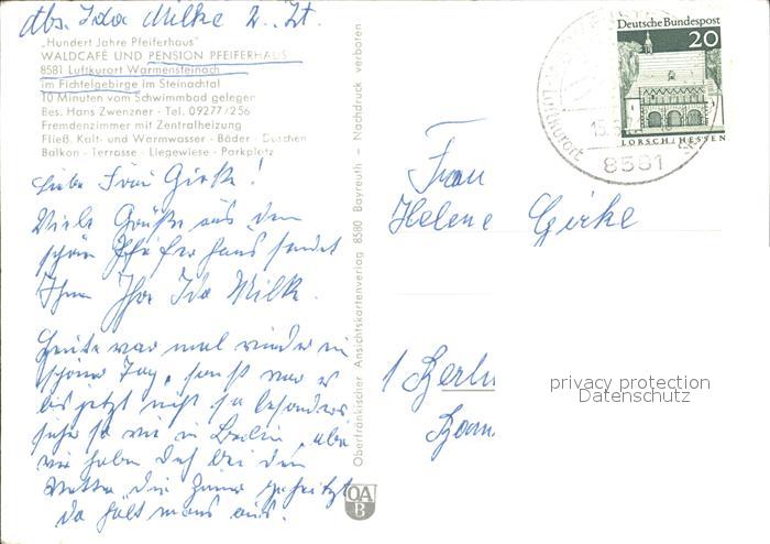 alte Postkarte Warmensteinach Waldcafe Pfeiferhaus Hund postalisch gelaufen Erhaltung siehe scans
