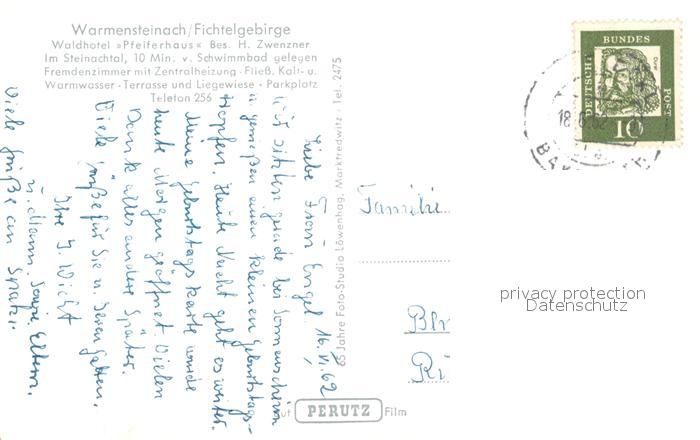 43361700 alte Postkarte Warmensteinach Waldhotel Pfeiferhaus postalisch gelaufen Erhaltung siehe scans [WerneD78] KatCode: 11110009472198