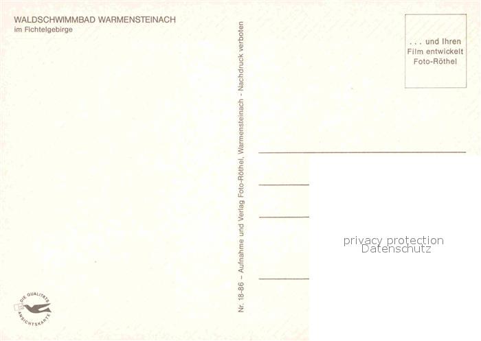 72844855 Warmensteinach Waldschwimmbad postalisch nicht gelaufen Erhaltung siehe scans [LiesaD40] KatCode: 11110009472198