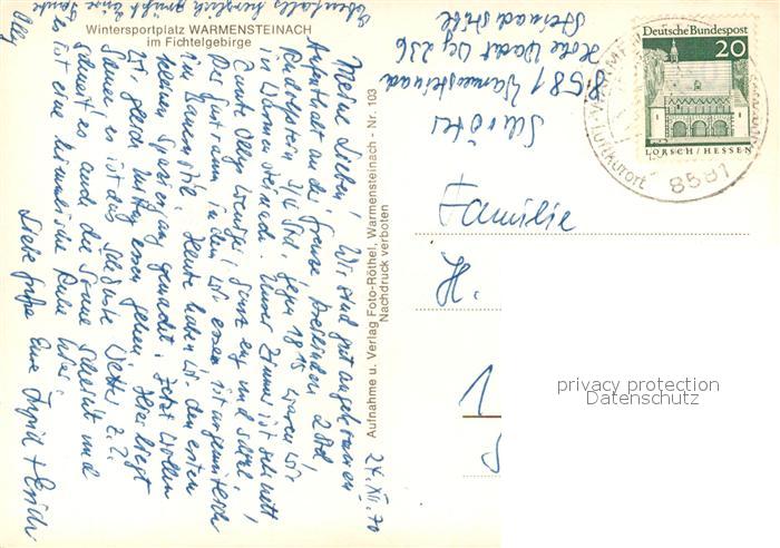 73045071 alte Postkarte Warmensteinach Winterlandschaft postalisch gelaufen Erhaltung siehe scans [KathaD81] KatCode: 11110009472198