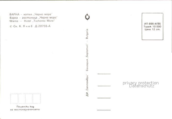 Warna Varna Hote Tscherno More postalisch nicht gelaufen Erhaltung siehe scans