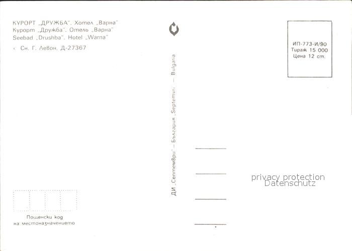 Warna Varna Seebad Druschba Hotel Warna postalisch nicht gelaufen Erhaltung siehe scans