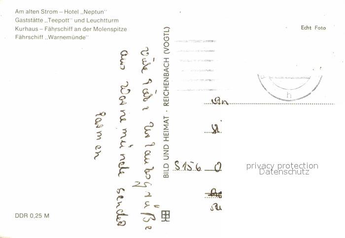 72728488 alte Postkarte Warnemuende Ostseebad Alter Strom Hotel Neptun Leuchtturm Gaststaette Teepott Kurhaus Faehrschiff Warnemuende Mole postalisch gelaufen Erhaltung siehe scans [FriedD77] KatCode: 11110013003000