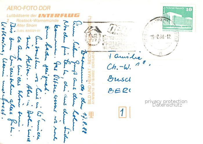 73716226 alte Postkarte Warnemuende Ostseebad Alter Strom Leuchtturm Teepott Luftbildserie der Interflug postalisch gelaufen Erhaltung siehe scans [FriedD77] KatCode: 11110013003000