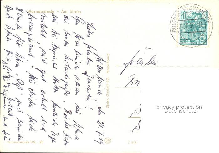 72318717 alte Postkarte Warnemuende Ostseebad alter Strom mit Booten postalisch gelaufen Erhaltung siehe scans KatCode: 11110013003000