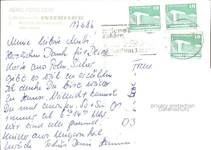 72597285 alte Postkarte Warnemuende Ostseebad Alter Strom Teepott Leuchtturm Luftbildserie Interflug postalisch gelaufen Erhaltung siehe scans [FriedD77] KatCode: 11110013003000