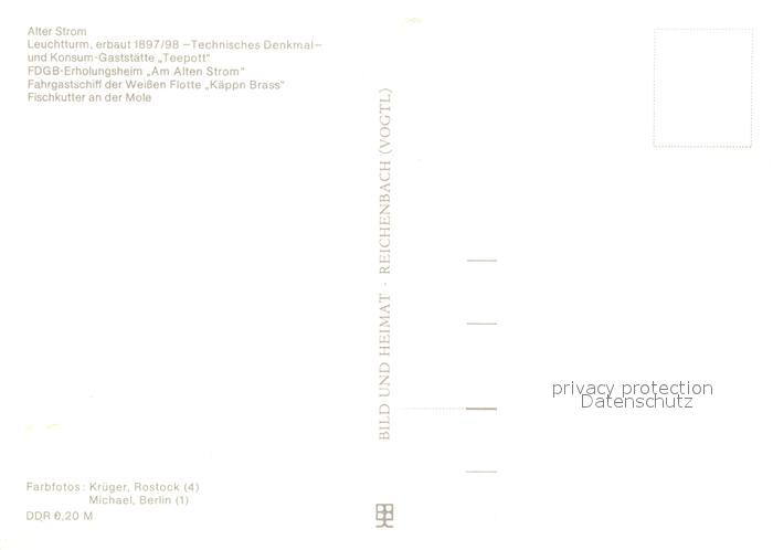 72961069 Warnemuende Ostseebad Alter Sturm Leuchtturm Konsum Gaststaette Teepott FDGB Erholungsheim Fahrgastschiff Weisse Flotte Fischkutter Mole postalisch nicht gelaufen Erhaltung siehe scans [FriedD77] KatCode: 11110013003000