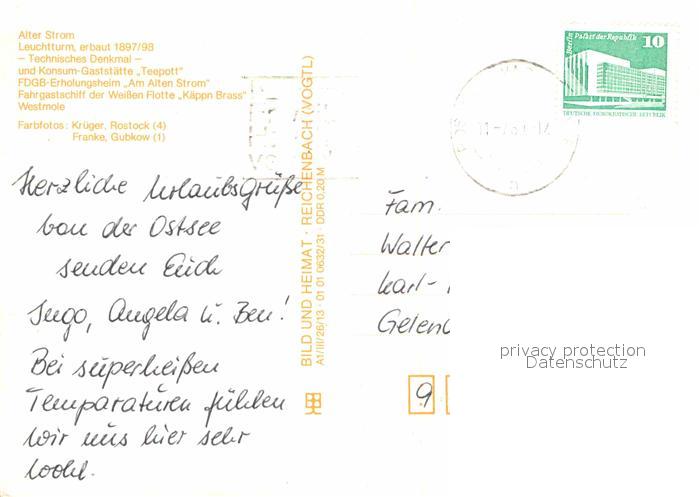 72655635 alte Postkarte Warnemuende Ostseebad Am Alten Strom Leuchtturm postalisch gelaufen Erhaltung siehe scans [AndreD76] KatCode: 11110013003000