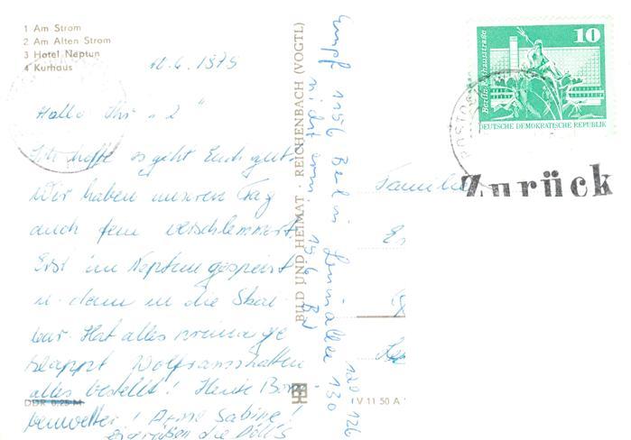 73914236 alte Postkarte Warnemuende Ostseebad Am Strom Am Alten Strom Hotel Neptun Kurhaus postalisch gelaufen Erhaltung siehe scans [FriedD77] KatCode: 11110013003000
