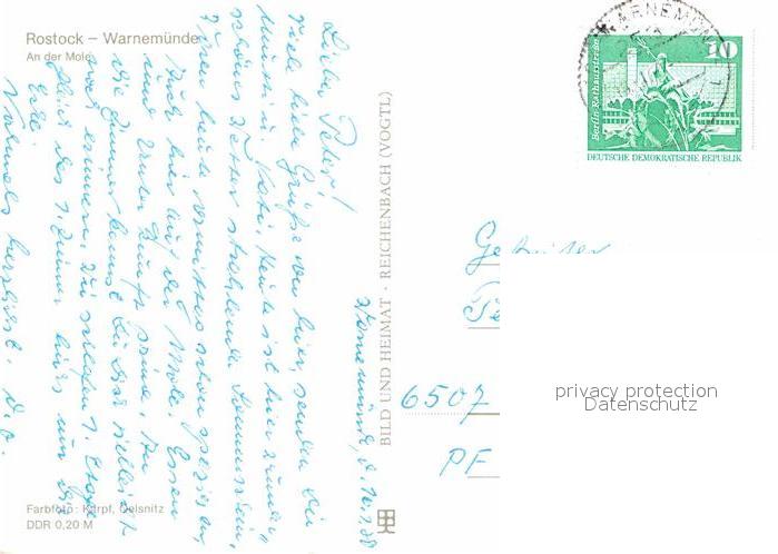 72627534 alte Postkarte Warnemuende Ostseebad An der Mole Leuchtturm postalisch gelaufen Erhaltung siehe scans [FriedD77] KatCode: 11110013003000