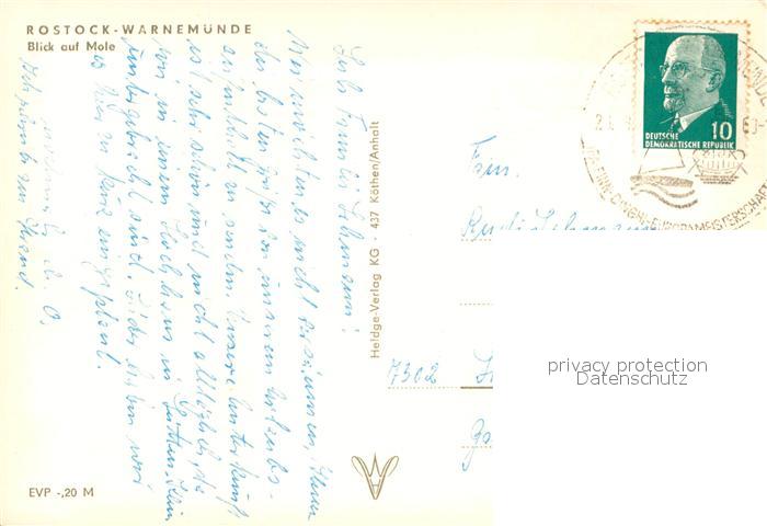 73705844 alte Postkarte Warnemuende Ostseebad Blick auf die Mole postalisch gelaufen Fliegeraufnahme Erhaltung siehe scans [FriedD77] KatCode: 11110013003000