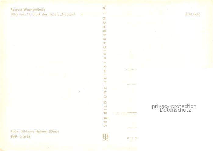 72977163 Warnemuende Ostseebad Blick vom 19. Stock des Hotels Neptun Promenade Strand Teepott Leuchtturm Faehre postalisch nicht gelaufen Erhaltung siehe scans [FriedD77] KatCode: 11110013003000