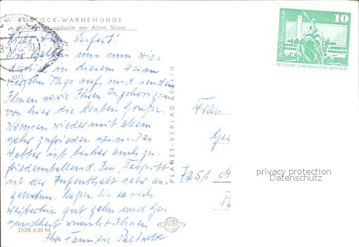 72092813 alte Postkarte Warnemuende Ostseebad FDGB Erholungsheim am Alten Strom postalisch gelaufen Erhaltung siehe scans KatCode: 11110013003000