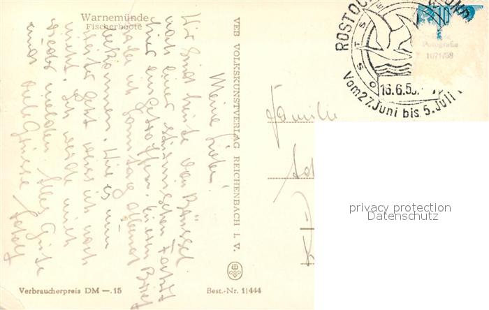 73550821 alte Postkarte Warnemuende Ostseebad Fischerboote postalisch gelaufen Erhaltung siehe scans [WerneD78] KatCode: 11110013003000