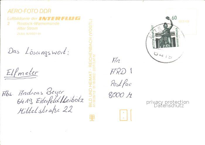 alte Postkarte Warnemuende Ostseebad Fliegeraufnahme Alter Strom postalisch gelaufen Erhaltung siehe scans