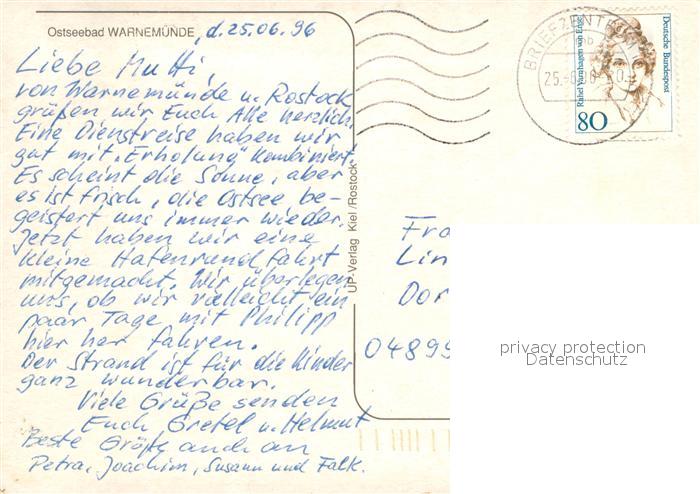 73717092 alte Postkarte Warnemuende Ostseebad Fliegeraufnahme Strand postalisch gelaufen Erhaltung siehe scans [LiesaD40] KatCode: 11110013003000