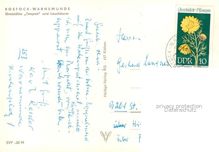 73102634 alte Postkarte Warnemuende Ostseebad Gaststaette Teepott Leuchtturm postalisch gelaufen Erhaltung siehe scans [KathaD81] KatCode: 11110013003000