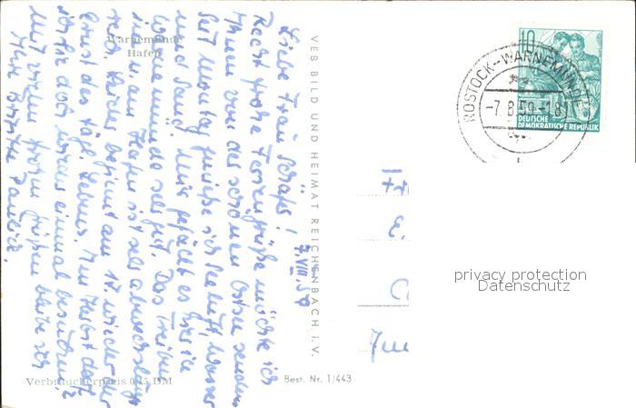 72363154 alte Postkarte Warnemuende Ostseebad Hafen Segelboote postalisch gelaufen Erhaltung siehe scans KatCode: 11110013003000