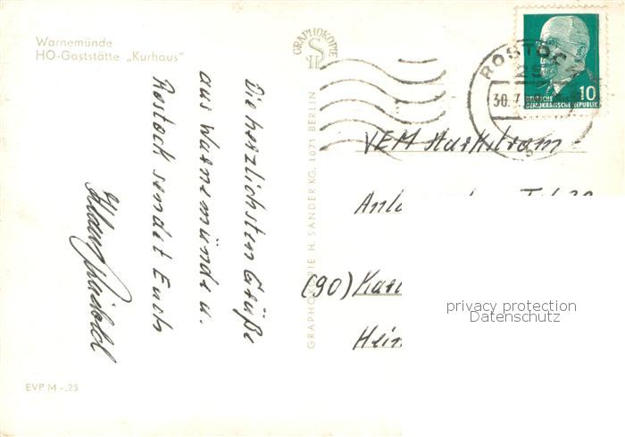 73783784 alte Postkarte Warnemuende Ostseebad HO Gaststaette Kurhaus postalisch gelaufen Erhaltung siehe scans [FriedD77] KatCode: 11110013003000