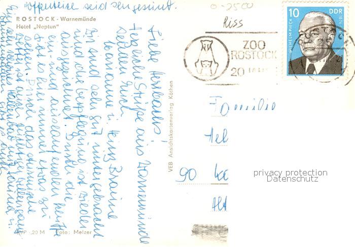 73032694 alte Postkarte Warnemuende Ostseebad Hotel Neptun postalisch gelaufen Erhaltung siehe scans [KathaD81] KatCode: 11110013003000