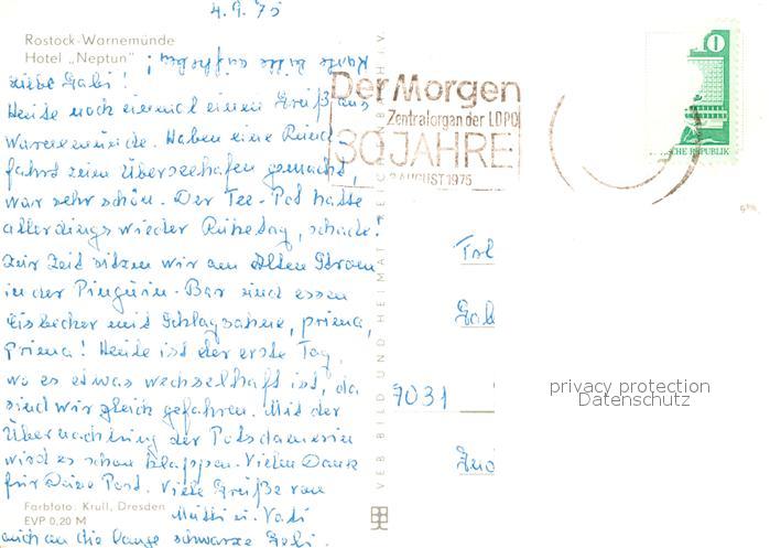 72986711 alte Postkarte Warnemuende Ostseebad Hotel Neptun postalisch gelaufen Erhaltung siehe scans [LiesaD40] KatCode: 11110013003000