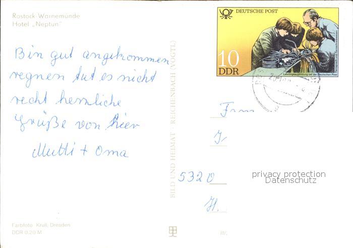 alte Postkarte Warnemuende Ostseebad Hotel Neptun postalisch gelaufen Erhaltung siehe scans