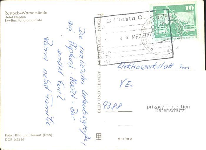 72283051 alte Postkarte Warnemuende Ostseebad Hotel Neptun postalisch gelaufen Erhaltung siehe scans KatCode: 11110013003000