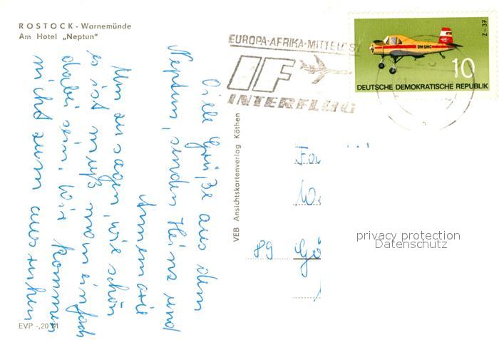 73101929 alte Postkarte Warnemuende Ostseebad Hotel Neptun postalisch gelaufen Erhaltung siehe scans [KathaD81] KatCode: 11110013003000