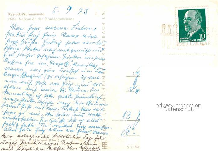 72755356 alte Postkarte Warnemuende Ostseebad Hotel Neptun an der Strandpromenade postalisch gelaufen Erhaltung siehe scans [FriedD77] KatCode: 11110013003000