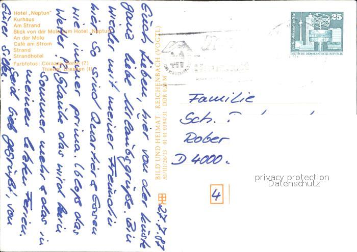 72288453 alte Postkarte Warnemuende Ostseebad Hotel Neptun Kurhaus Strand Strandhotel postalisch gelaufen Erhaltung siehe scans KatCode: 11110013003000