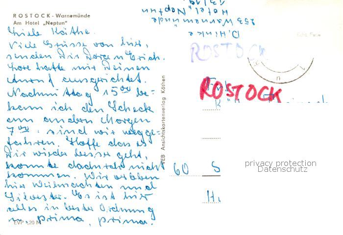72952604 alte Postkarte Warnemuende Ostseebad Hotel Neptun Promenade postalisch gelaufen Erhaltung siehe scans [FriedD77] KatCode: 11110013003000