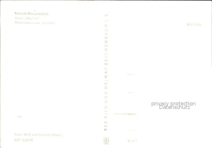 72427925 Warnemuende Ostseebad Hotel Neptun Restaurant Koralle postalisch nicht gelaufen Erhaltung siehe scans KatCode: 11110013003000