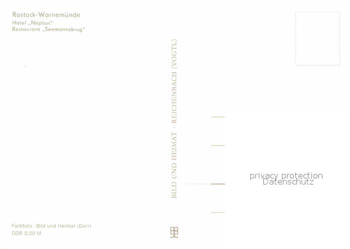 72742036 Warnemuende Ostseebad Hotel Neptun Restaurant Seemannskrug postalisch nicht gelaufen Erhaltung siehe scans [LiesaD40] KatCode: 11110013003000