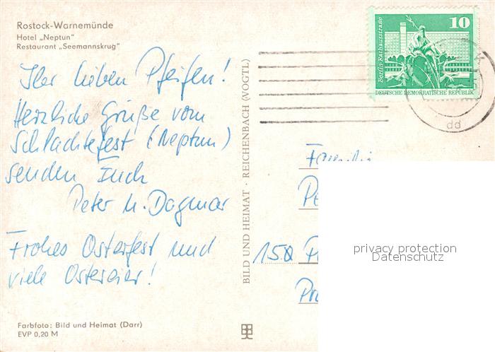 73569599 alte Postkarte Warnemuende Ostseebad Hotel Neptun Restaurant Seemannskrug postalisch gelaufen Erhaltung siehe scans [FriedD77] KatCode: 11110013003000