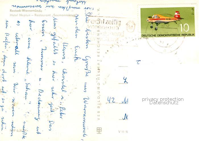 73284996 alte Postkarte Warnemuende Ostseebad Hotel Neptun Restaurant Seemannskrug postalisch gelaufen Erhaltung siehe scans [LiesaD40] KatCode: 11110013003000