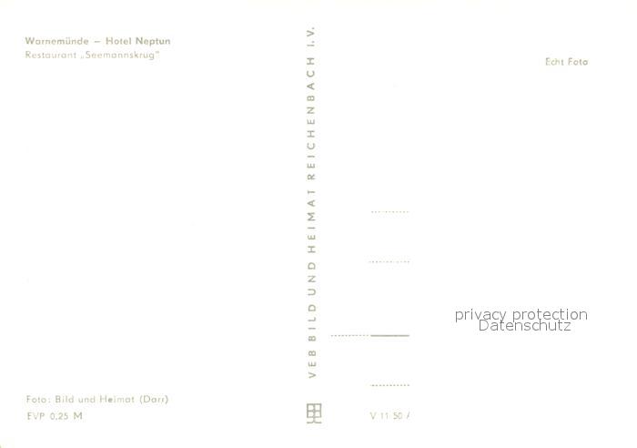 73279042 Warnemuende Ostseebad Hotel Neptun Restaurant Seemannskrug postalisch nicht gelaufen Erhaltung siehe scans [NatalD47] KatCode: 11110013003000
