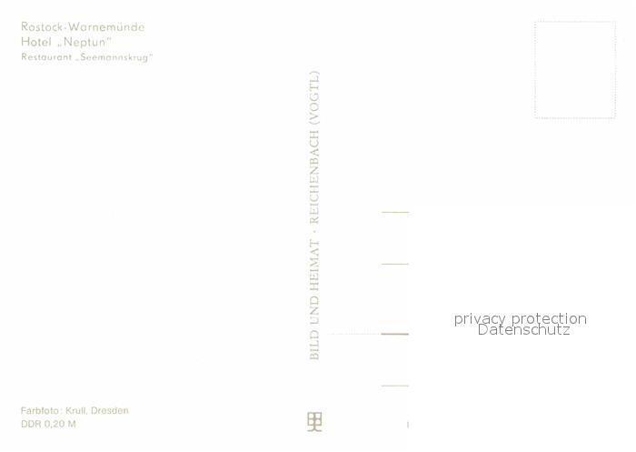 72742031 Warnemuende Ostseebad Hotel Neptun Restaurant Seemanskrug postalisch nicht gelaufen Erhaltung siehe scans [LiesaD40] KatCode: 11110013003000