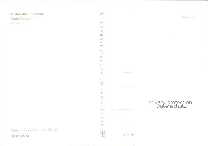 72427932 Warnemuende Ostseebad Hotel Neptun Snak-Bar postalisch nicht gelaufen Erhaltung siehe scans KatCode: 11110013003000
