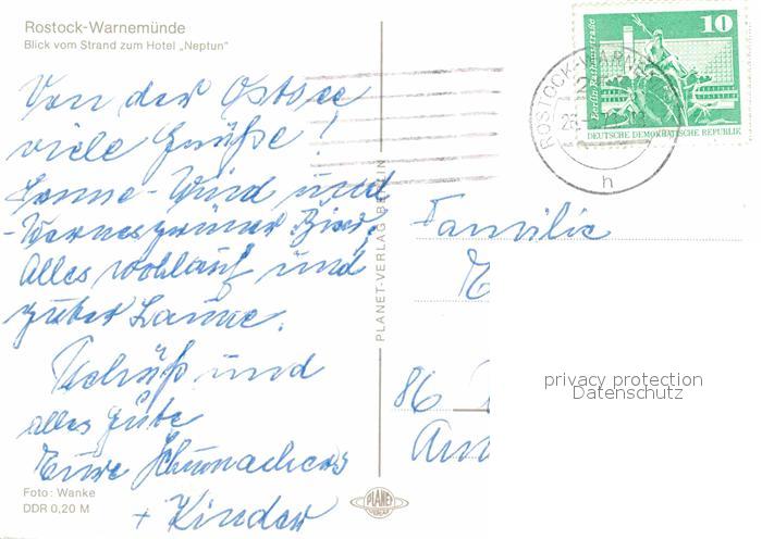 72846818 alte Postkarte Warnemuende Ostseebad Hotel Neptun Strand postalisch gelaufen Erhaltung siehe scans [KathaD81] KatCode: 11110013003000
